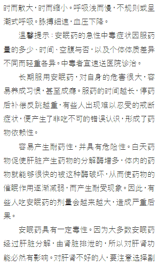 都市报:长期服用安眠药,可产生蓄积中毒 加拿大都市网 2021年9月27日 11:15 【加拿大都市网】为了促进睡眠质量,有人会在睡前服用安眠药,但要小心,长期服药会影响身体健康。 本期都市报给您分析长期服用安眠药的危害。(P51)