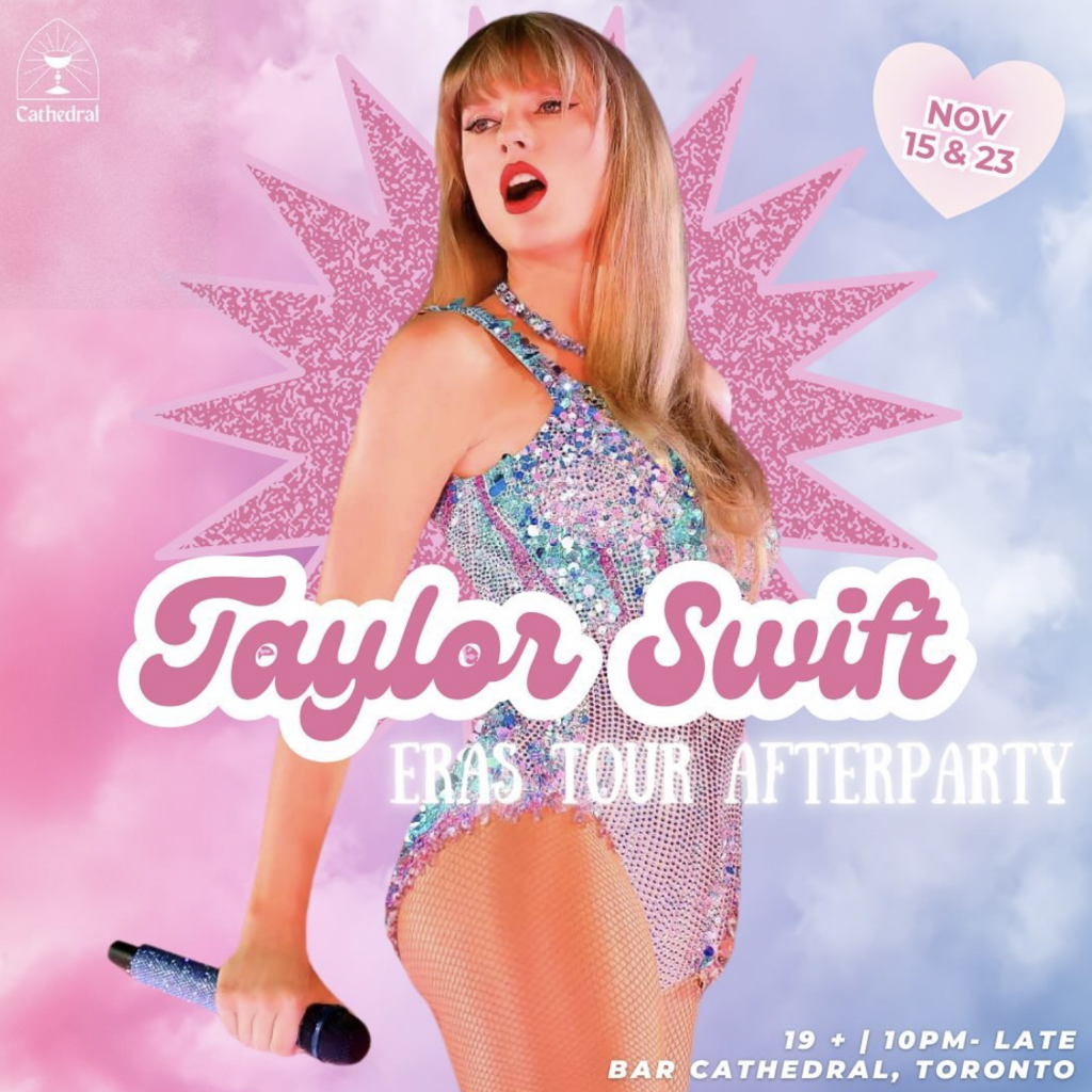 这场在Union Station附近举办的派对由Bar Cathedral主办,场地就在Rogers Centre附近,为所有Taylor Swift的乐迷提供狂欢的场地。主办单位会提供Taylor Swift主题的饮品,场地以周边及海报装饰,是所有乐迷梦寐以求的派对!