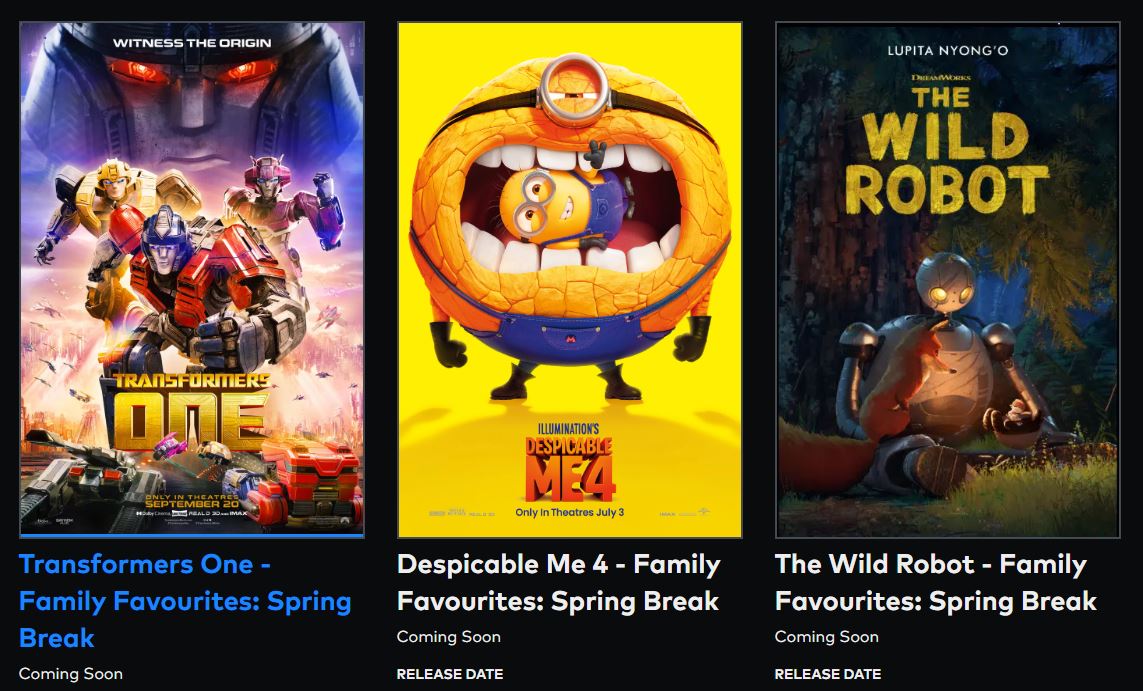 【星岛都市网】Cineplex配合各区春假时间表,于2月、3月及4月期间推出特惠家庭电影放映,票价仅需3.99加元。