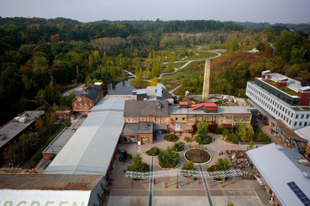长青砖厂(Evergreen Brick Works)区,如今成为都市中的一片自然绿洲。四周环绕着池塘和小径,尤其在秋季更显迷人。