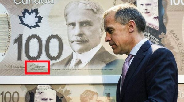 卡尼曾任加拿大中央银行行长,因此于现在仍流通的部分钞票上,包括5元至100元,可找到他的签名。有笔迹专家在分析卡尼的签名后表示,他是思维敏捷、有自信和坚毅的人。