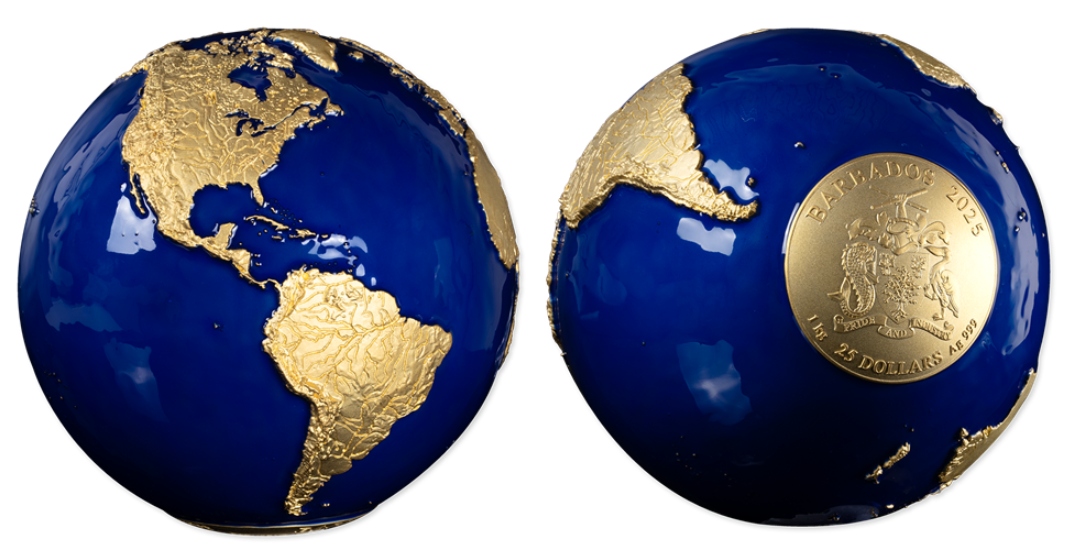 【星岛都市网】加拿大皇家铸币厂新推出一款地球仪硬币,蓝色弹珠银币的重量不如现已售罄的大枫叶银币(重达 10 公斤),但重 1 公斤。