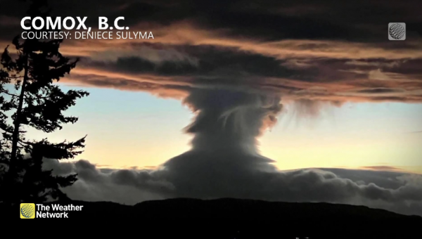 在上个周末(14日),卑诗省南部的海岸也出现了另一天文异象,一股被称为“UFO云层”的磨菇云在暴风雨后出现,从阳光海岸( Sunshine Coast)到Comox等地,都有居民拍得这个奇景。