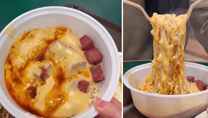 茶档去年才在三号路(No.3 Road)帝国中心(Empire Centre)美食广场开设首店,如今在不远的八佰伴开了第二店,餐牌上有新加入的干炒牛河、星洲炒米、咖喱牛筋腩饭、XO酱猪扒意粉等,还有一些在首店吃不到的独家食品,例如单看名字也觉得邪恶的午餐肉芝士虾油捞丁(下图),以及白汁蘑菇鸡丝通粉。
