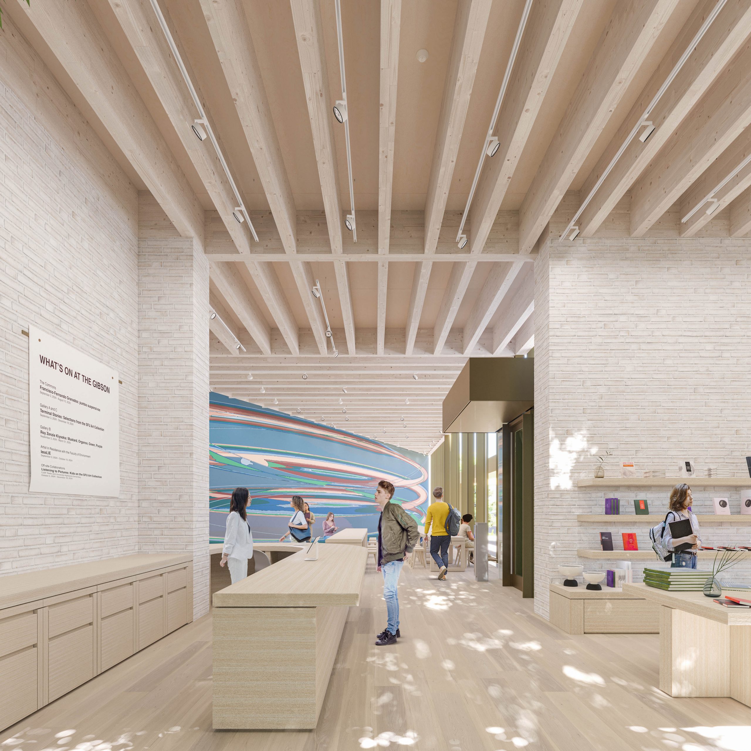 吉布森美术馆馆长菲利普斯(Kimberly Phillips)在周四(7日)发布的新闻稿中表示:“吉布森美术馆的空间设计灵感部分源于树木的智慧及其地下的交流和支持网络,艺术与学习在此交融,形成了一个充满活力的活动天幕,并由深层联系支撑。”