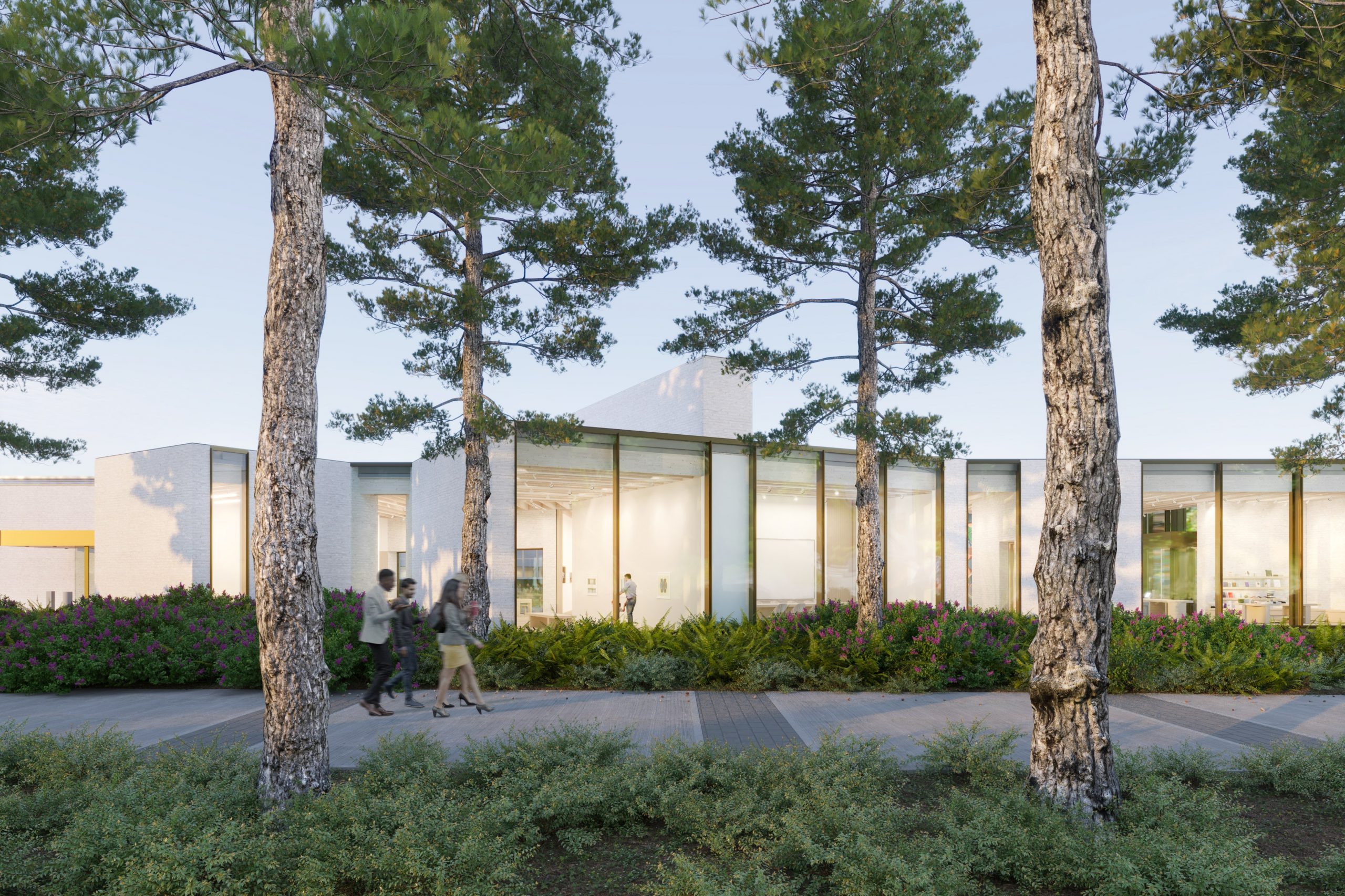 这座占地12,000平方呎的美术馆由庞塔里尼建筑事务所(Hariri Pontarini Architects)的Siamak Hariri设计,其特色在于展现与自然的联系,并凸显校园的周边环境。美术馆的艺术工作室、展览空间和讨论室旁边是一个庭院,每个房间都装有宽大的窗户,模糊了室内外的界线。