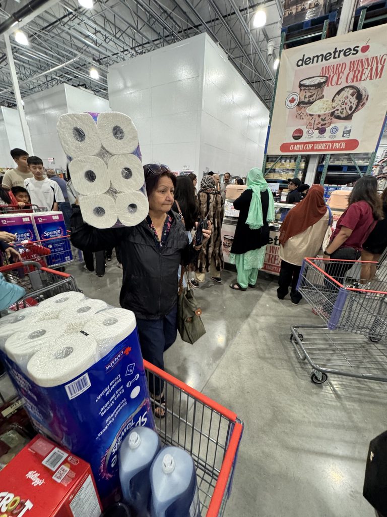 令记者与一众顾客眼前一亮的特价货品,竟是近半价出售、一包12卷的厨房纸,可说是几乎每架购物车上都放有至少两包。