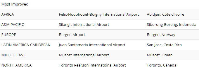 此外,皮尔逊机场也被评为北美区“进步最大”的机场。
