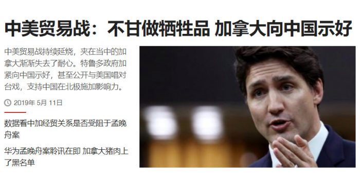 BBC中文网说,加拿大政府现在对中国示好,不仅是因为急于解决争议,可能也是因为对美国的反应感到不满。其文章标题就说,《中美贸易战:不甘做牺牲品,加拿大对华示好》。