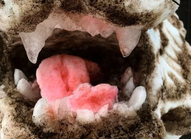 但雪人和冰屋似乎还不能满足Coquitlam一位25岁华裔的脑洞。她在自己家的院子里砌了一座“冰雪动物园”,里面有一只2米高的雪老虎。