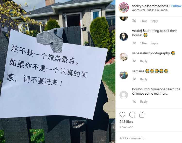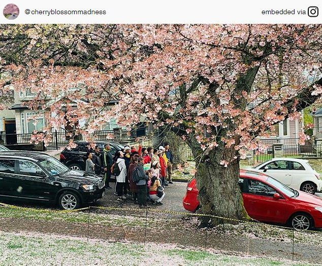 星岛都市网智苏报道:又到了一年一度的樱花季,温哥华各地的樱花基本都达到了盛放期。近几年,数以千计的游客慕名来到温哥华,在花下拍照合影,但游客的不断涌入却给当地人带来烦恼:原本就很繁忙的交通,变得更加拥堵了。温哥华华裔设计师Lele Chan专门开了Instagram账号,记录游客们为了在居民区公路拍照所摆出的各种姿势。