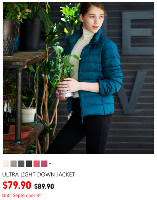 Uniqlo 优衣库本周优惠出炉,天气渐冷,轻薄羽绒夹克降价啦!