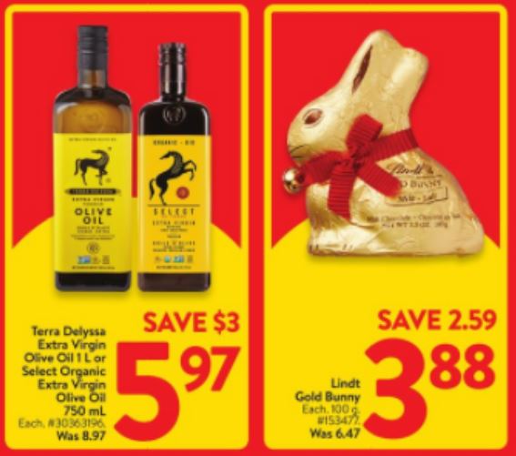 初榨橄榄油特价$5.97。瑞士莲复活节小兔子巧克力特价$2.59.