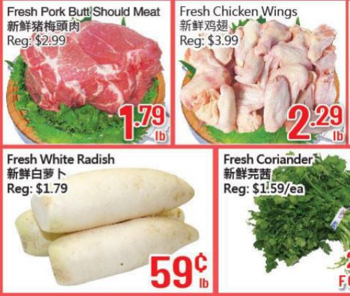 新鲜白萝卜特价$0.59/LB。猪梅头肉特价$1.79/LB。