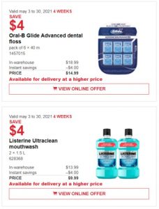 欧乐B牙线特价$14.99;李施德林漱口水1.5L两瓶$9.99.