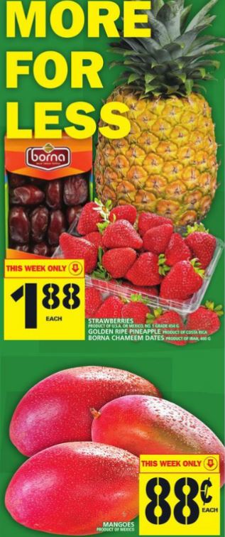 菠萝特价$1.88/只;芒果特价$0.88/只。