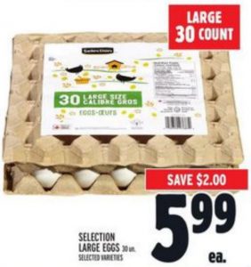 大鸡蛋30只特价$5.99。