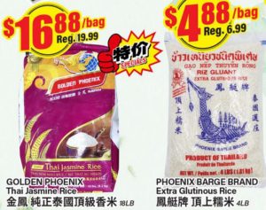 泰国顶级香米18LB特价$16.88;顶上糯米4LB特价$4.88。