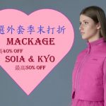 另外,Mackage旗下的姊妹品牌Soia & Kyo也同时推出季末打折销售,时尚百搭外套最高5折。