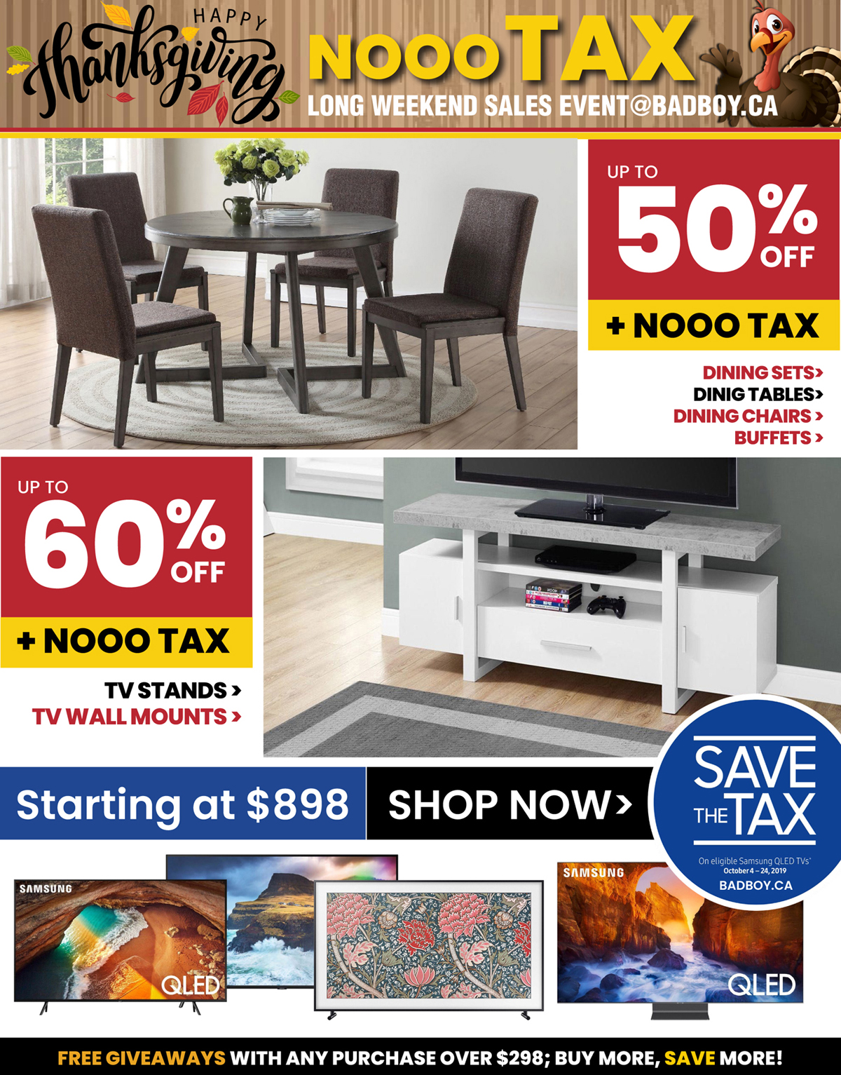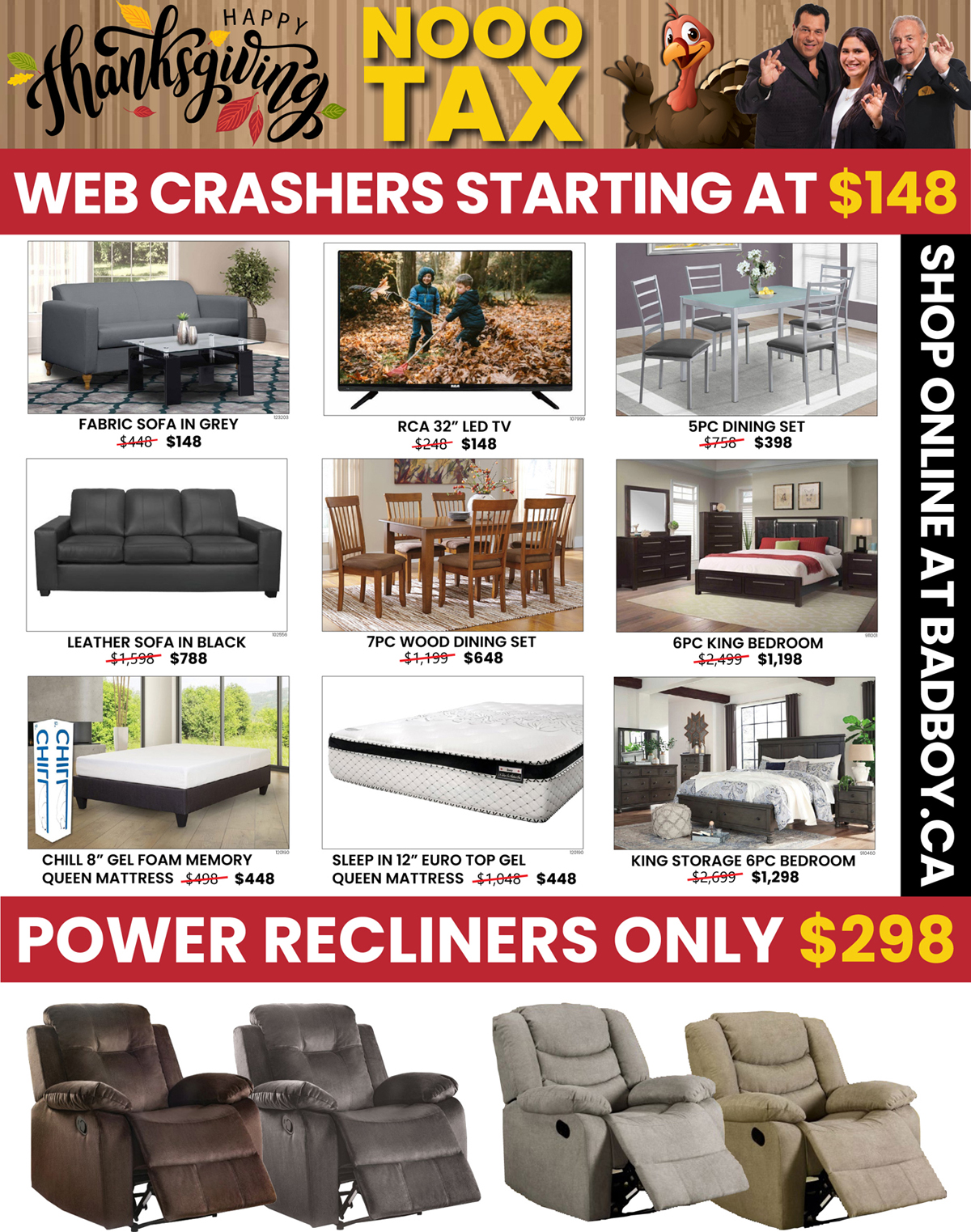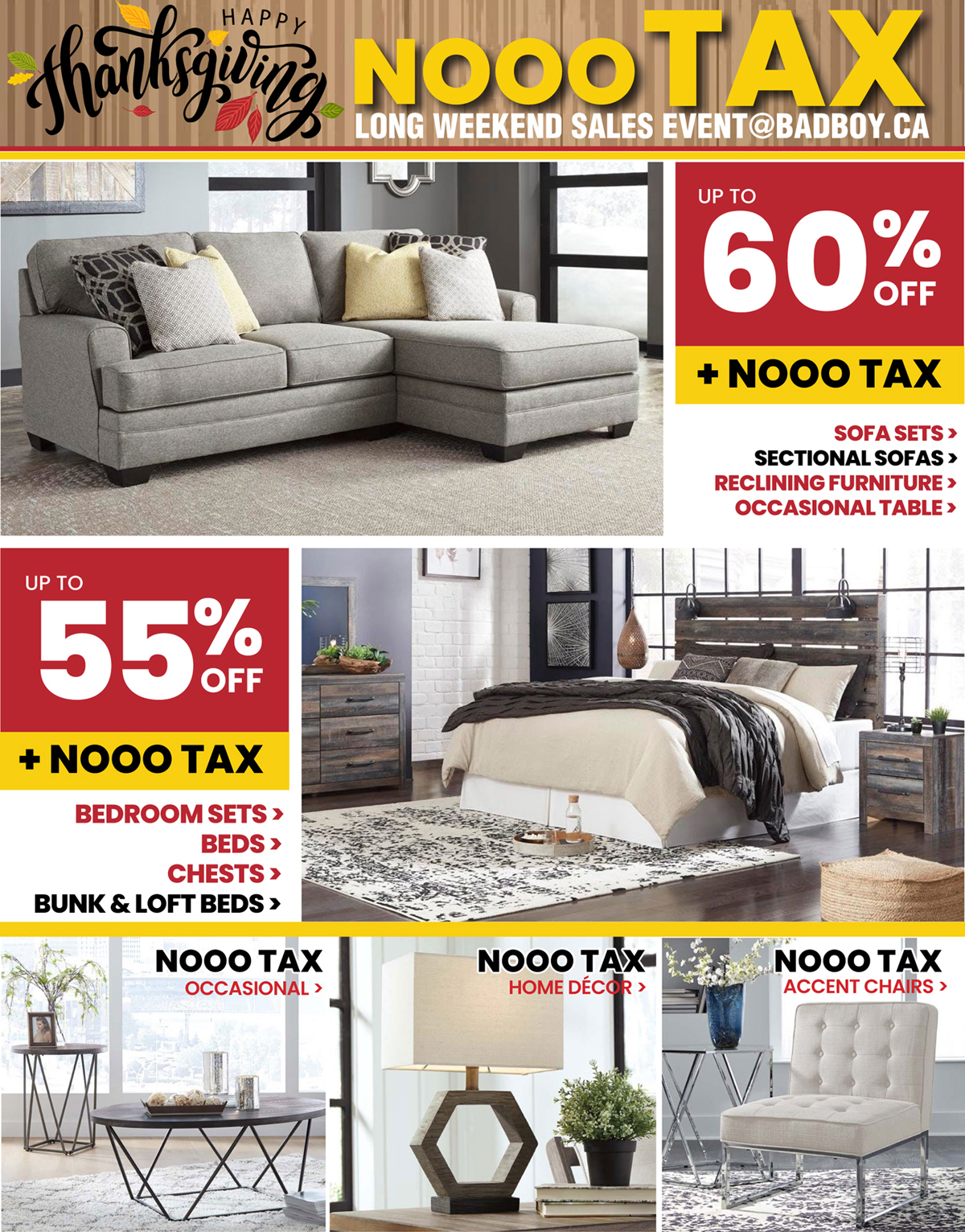 上周六Bad Boy刚于1119 Kennedy Road士嘉堡店举行华人疯狂特卖日,可能有不少顾客错过了难得机会。本周末优惠再次到临,若您想过替家居转换新装、或者更换大型家电,不妨到Bad Boy官网看看,是否找到自己一直想买的那一款,也不用等到黑五或节礼日饱受货源不足或天气交通问题影响。