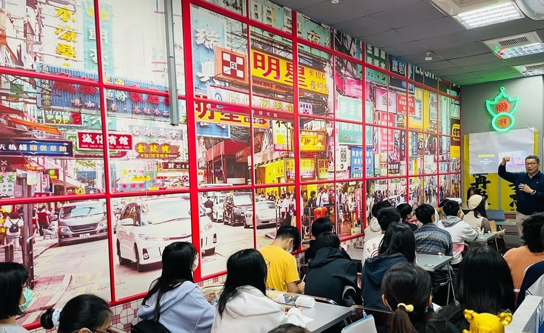 香港的茶餐厅只会满足顾客的口腹之欲,但海外的茶餐厅有时还肩负传承香港文化、提供精神食粮的使命。“九月”成为了港人的聚脚地,偶尔也办起讲座 (上图),提供各种资讯协助在台港人。