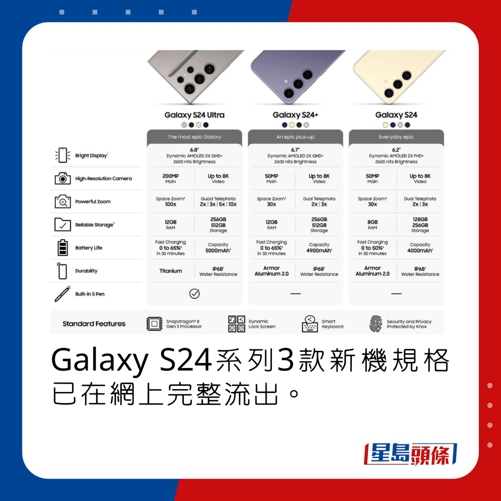 一如以住,即将现身的Galaxy S24系列,预计有3款登场: