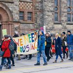 安省反贫穷联盟(OCAP)与约200名多伦多市民,于艾伦花园(Allan Gardens)游行至联邦财政部长莫奈(Bill Morneau)的办公室外示威,反对削减多伦多社区公屋公司(TCHC)经费,并反映市内缺乏社区房屋供应问题,当中有人拉起红色横额要求“全民有住房”。 联盟表示联邦政府应在两年之内向多市拨出房屋经费。另外约40名柏克岱尔(Parkdale)居民,于皇帝街西(King St. W.)夹德化林街(Dufferin St.)抗议发展商于低收入区域兴建分契式住宅,对区内低收入社群的住屋构成威胁。