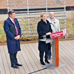 ■韦恩宣布拨出省内剩余土地,发展可负担住宅楼房。左为多伦多市长庄德利。