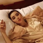 范冰冰画着精致的妆容躺在床上,抽着烟颇具风情。她衣服散乱扭动着身子,表情挑逗作风大胆,令人侧目。