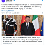 报道指,随同习近平出访的中国代表团超过400人,包下整间酒店共7个楼层177间客房。该酒店标准房间价约300欧元(约2,665港元),其他较大面积的房间600至700欧元(5,330至6,218港元),平均房价约500欧元(4,442港元)。加上餐饮,习近平这次出访意大利,三日两夜花费超过20万欧元。
