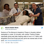 据英国《每日邮报》3月17日报道,这位六胞胎母亲名叫希尔玛·齐亚卡,居住在休斯敦,她于15日凌晨4点50分至4点59分期间,在得州妇女医院的产房顺利生下6个宝宝。
