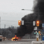 多倫多華人區路上有車燒起來了 滾滾黑煙非常可怕!