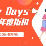 Bay Days年度大促 全场低至2.5折+额外8.5/9折+免邮费!
