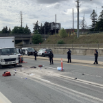 据CP24报道,周五(9月3日)下午1时20分左右,一辆黑色皮卡货车沿Steeles Avenue靠近Alness Street位置东行时,撞到至少一名建筑工人,随后撞倒一面护栏,撞上一辆工程卡车。