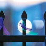 伦敦伊斯兰学校学生将丝带系在纪念物上,绿色代表反伊斯兰恐惧症,紫色是尤纳最喜欢的颜色。星报