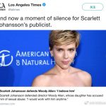 寡姐捍卫伍迪的行为,在社交网络上迅速引起了诸多反对,许多网友认为她一边号称支持“Me Too“的反性侵运动,一边为伍迪辩护,非常不妥。寡姐从#MeToo运动刚一发起时就十分积极,在不同场合公开反对性骚扰与性侵行为。