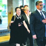 孟晚舟周二著黑色礼服裙装,离开温市住宅前去法庭出席聆讯。加通社