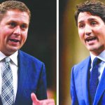 多个民意调查显示,自由党与保守党在支持率上“叮当马头”。在周一的辩论里,杜鲁多、谢尔、新民主党党领驵勉诚(Jagmeet Singh)、绿党党领伊丽莎白·梅(Elizabeth May)、加拿大人民党党领卞聂尔(Maxime Bernier)及魁人政团党领布兰切特(Yves-Francois Blanchet)就道德操守、气候转变和经济等议题舌剑唇枪。