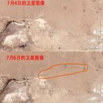 据美国有线电视新闻网(CNN)9日报道,美国“独立日”当天以及5日晚在加利福尼亚州南部发生的两次地震,导致当地地形发生了变化。美国私人地球成像公司“星球实验室”提供的卫星图像显示,靠近震中的区域出现了一条巨大裂缝。 由图中可以看出,6日,裂缝从之前的蓄水区域向外延伸了一部分。