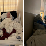 但手术后,曼根被告知在恢复期间需要转移到医院走廊。这位70岁长者提供的照片显示他的床周围挂著窗帘,走廊上还可以看到其他病床。