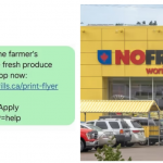 The Ontario Small Business Community在社交媒体上贴上一张截图,上面有No Frills的最新传单:“免除到农贸市场排队的烦恼,我们以低廉的价格提供新鲜的农产品。马上来购买吧!”