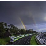 周六的双彩虹特别令人印象深刻,在下面的视图中,在铁路和Gardiner高速公路上显得得非常漂亮。