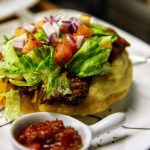 顾名思义,bannock 是餐馆菜单的重要组成部分。这是一种原住民传统面食,简单地用小麦粉、发酵粉、盐和水制成,然后烘烤或油炸。 炸面包被用作纳瓦霍炸玉米饼的蓬松剂。玉米卷里面堆满了像辣椒一样的碎牛肉、西红柿、生菜、洋葱、奶酪、酸奶油和莎莎酱。