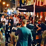 多市高级扒房昨晚发生枪击案,一名男食客中枪。 CTV警员在现场进行调查。 CTV综合报道 多伦多市中心一间高级扒房昨晚发生枪击案,一名50多岁的顾客在餐厅用餐期间中枪,情况危殆,警方正追缉一名穿深灰色连帽卫衣的疑犯,据报他持有黑色手枪。案发于市中心闪高街(Simcoe Street)夹阿德莱德街(Adelaide Street)地区的扒房Michael's On Simcoe,警方昨晚9时左右抵达现场,发现一名男子在餐厅内中枪倒卧地上,没有生命迹象,救援人员在餐厅外其后为伤者进行心肺复苏急救,然后将伤者送往医院创伤中心抢救。有目击者对警方表示,他们曾在餐厅Michael's On Simcoe内听到4至5下枪声。根据CP24报道,餐厅客人Frene DiMaso表示,她当时坐在餐厅上层,首先听到两下枪声,然后再听到两下枪声。她说:「最初我们以为有人在放烟花,完全没有为意是开枪。」目击者闻多次枪声另一名目击者则表示,枪击发生时,他在餐厅内亲眼目击伤者遭枪击情况。餐厅客人在事后纷纷躲在餐桌下,表现惊慌,餐厅负责人亦有呼吁客人蹲伏地上,后来才叫客人离开。有餐厅女客人表示,曾经帮助伤者进行心肺复苏急救。警方透露,一名疑犯开枪后逃离餐厅。警察正在寻找一名手持黑色手枪的男子,据报他犯案时穿着一件深灰色的连帽卫衣。有市民声称在邻近的珍珠街(Pearl Street)见到疑犯。Michael's On Simcoe扒房在2年前亦曾发生类似枪击案,当时有2名蒙面男子进入餐厅,向坐在餐厅一对20多岁男女开枪,导致两人重伤。资料来源:星报