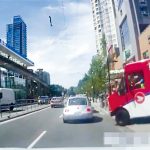 从王先生车上的行车纪录装置,拍得加拿大邮务车从小路驶出的情景。被访者提供
