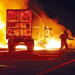 401公路3车相撞引发大火两人死 意外现场路面损坏