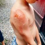 安省彼斯桥(Bracebridge)妇女Shayna Pickle,最近在facebook张贴5岁儿子在国庆日当日,怀疑因使用Banana Boat防晒产品,导致膊头和手臂皮肤红肿和起水泡的情况,Pickle提醒其他人小心使用这个牌子的产品,又指产品应该立即下架:「心都碎了,这就像个大伤口,因为水泡破了,皮肤都撕开。」