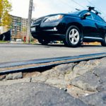 安省恶男天桥向下抛砖 吉普车被砸洞生死一线