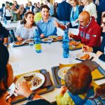 杜鲁多与苏菲在赈灾中心与当地民众午膳。加通社