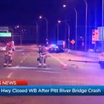 (现场图片Global News提供)据Global News报道,卑诗省Pitt Meadows在8月17日星期四凌晨2时30分前发生致命车祸,一部汽车翻侧,一人死亡。未知意外原因,但警方在事后要关闭Pitt River桥西行线多个小时,界乎Harris Road至Pitt River桥的Lougheed公路西行线也同时封锁。驾驶人士一度要使用Golden Ears桥,一号公路和Port Mann桥。V06